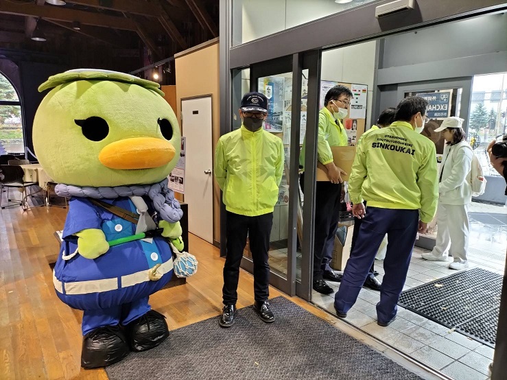 (↓11/1午前…運河プラザで『11/1警備の日で、運がっぱが警備員の服装で啓発運動をしていました。)[ヨ]
