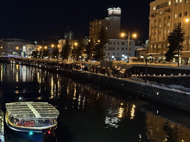 (↓2/15 19:00頃…雪あかりの路・運河会場の賑わいの運河です。)[ヨ]