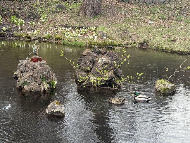 (↓4/26…小樽市市役所前の小便小僧とカモと鯉。)[ヨ]