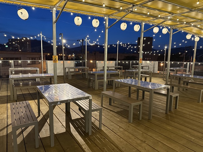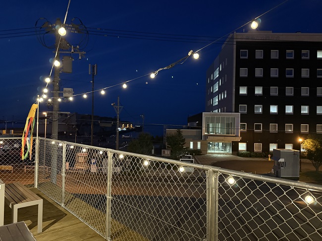 (↓小樽国際インフォメーションセンター・2Fの「ハイボールテラス(営業時間⇒12:00~21:00)」からの夕景。)[ヨ]