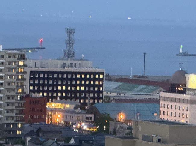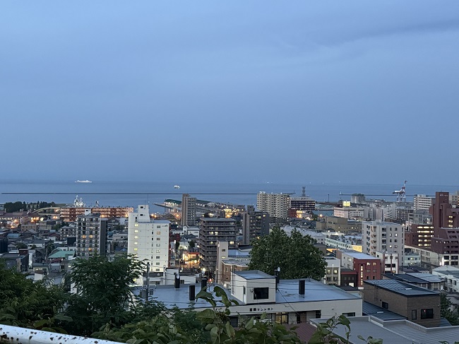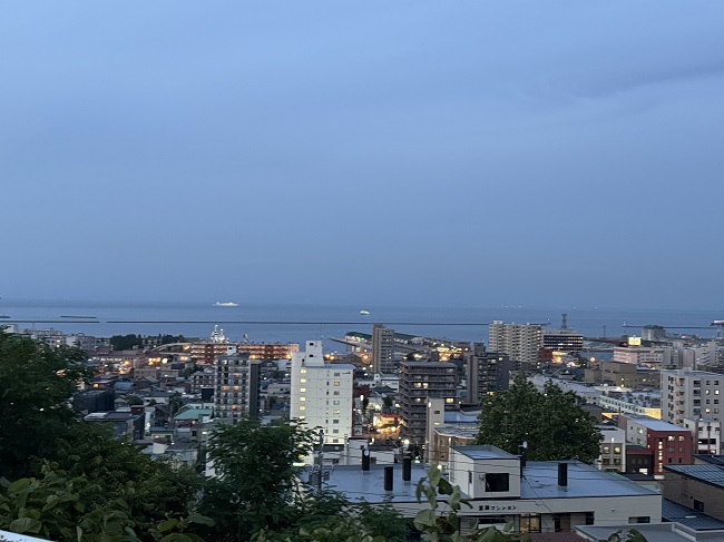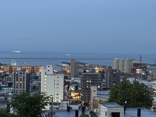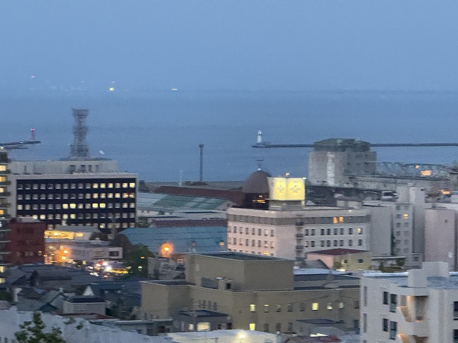 今朝は、雲の合間から薄日のさす朝を迎えました。日中の最高気温は29℃で、濃霧の注意報が出ています。本日は、市立小樽文学館・市立小樽美術館が休館日です。ご注意ください。お帰りの遅い方は、折りたたみ傘を準備されると安心かと思います。 十分な水分補給に心掛け、小樽観光をお楽しみください。