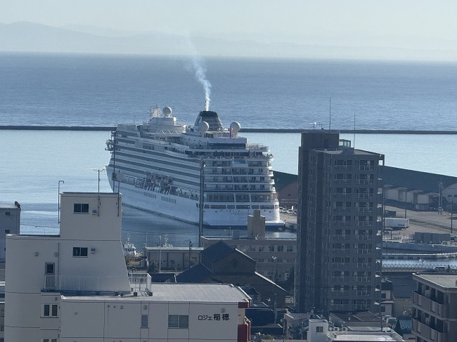 (↓9/30 7:30…富岡ニュータウンからクルーズ船「バイキングビーナス」が見えました。)[ヨ]
