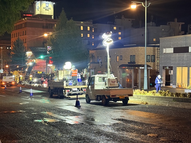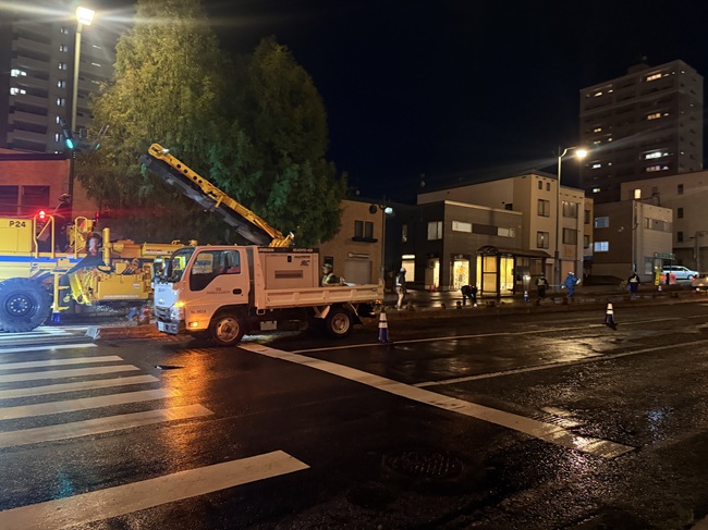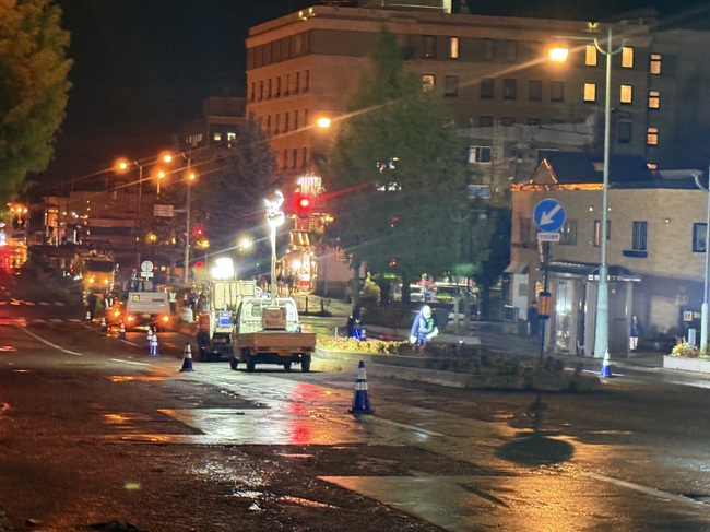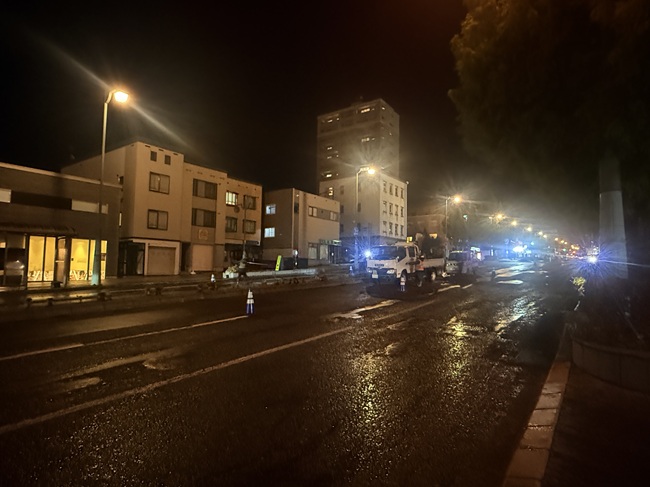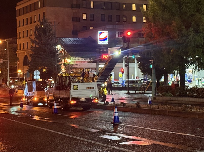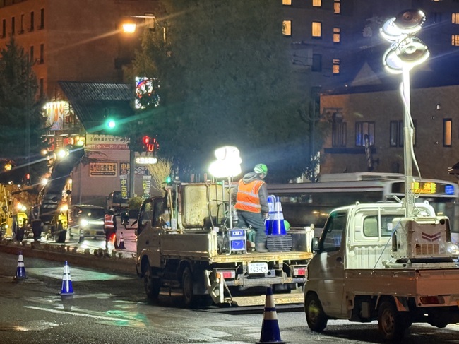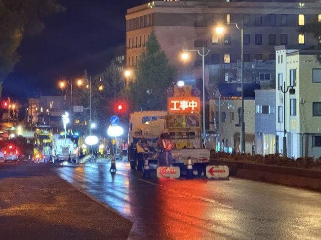 (↓10/28 20:20過ぎ…運河近くの道路では道路を削って補修工事していました。)[ヨ]