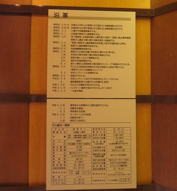朝里ダム記念館では、ダムの模型や朝里ダム建設についての紹介パネル、