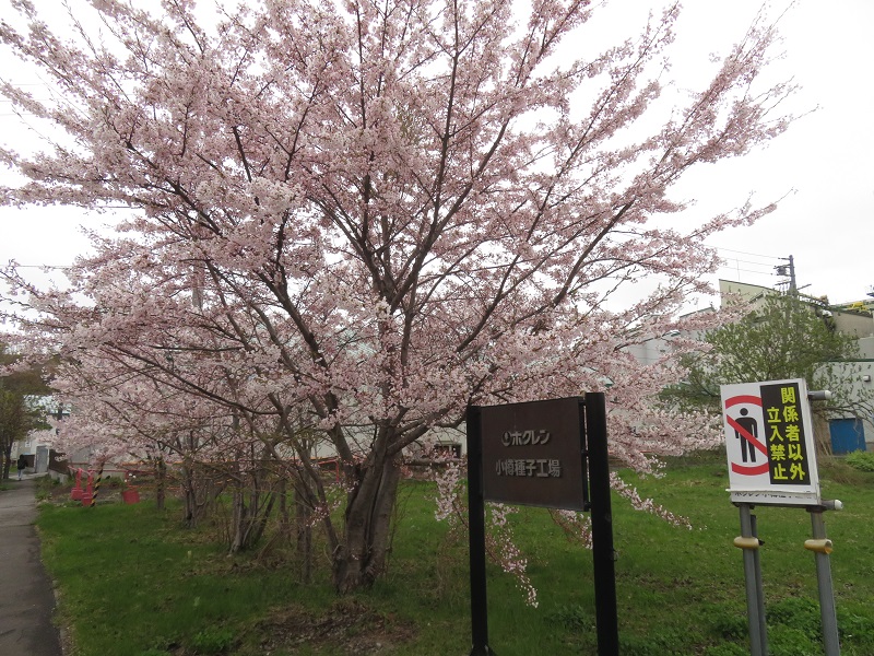 2025年4月30日(水)午前8時ごろのホクレン小樽種子工場道路沿いの桜です。