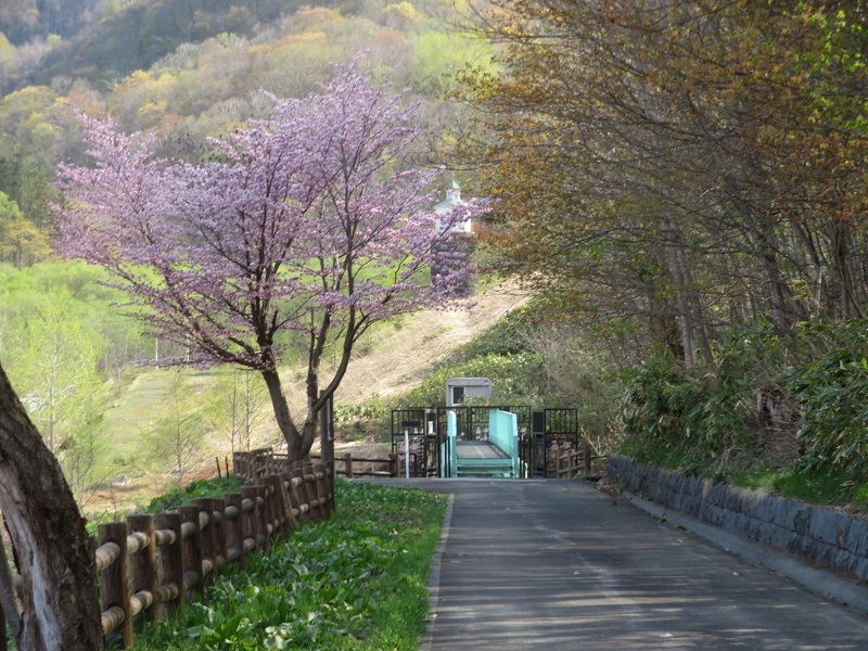 奥沢水源地の水管橋へ向かう道沿いのさくらが1本咲いていました。
