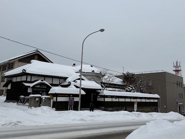 (↓1/14 12:20頃…富岡町にある立正佼成会小樽教会の雪景色。)[ヨ]