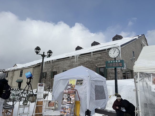 今朝は、薄日の差す寒い朝を迎えました。日中の最高気温ー2℃です。本日は、市立小樽文学館・市立小樽美術館が休館日です。ご注意ください。引き続き『小樽雪あかりの路28』が各会場で開催されます。暖かい服装と滑らない靴で雪あかりの路をお楽しみください。昨日からプラス気温のため、屋根からの落雪にご注意ください。