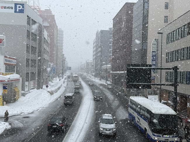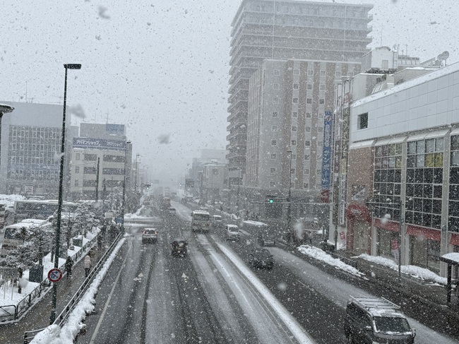 (↓2/13 13:550過ぎ…湿った雪の降る小樽駅近辺の風景。 )[ヨ]