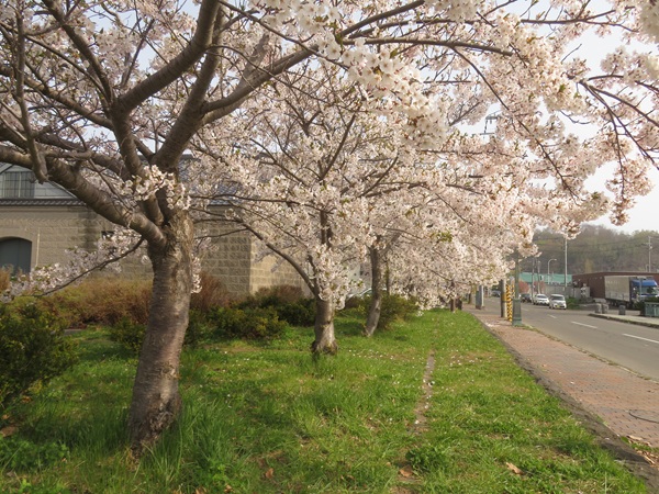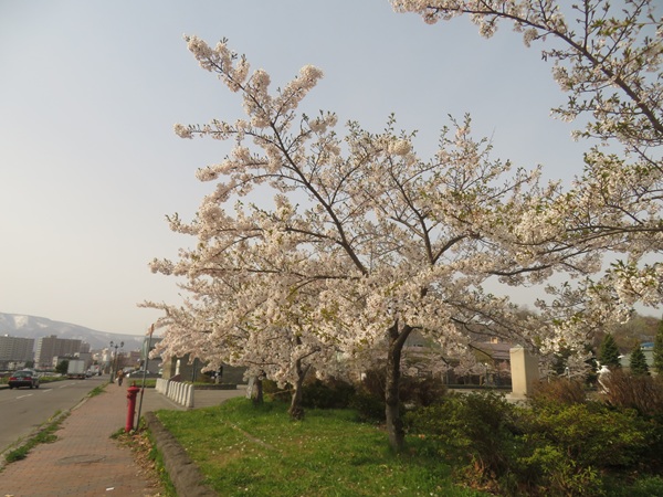 2026年4月27日(月)午前8時頃の運河公園の桜です。