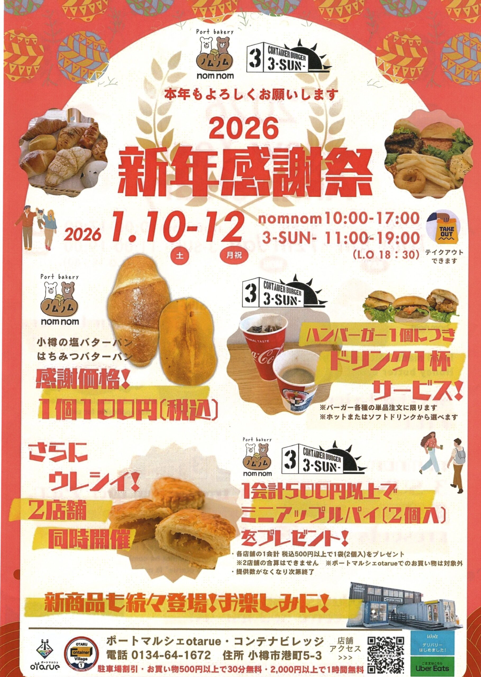 ポートマルシェotarue・コンテナビレッジで、新春感謝祭を開催致します。