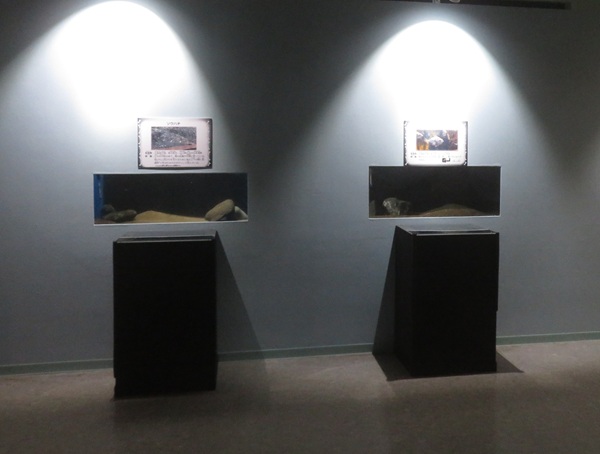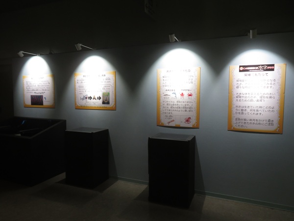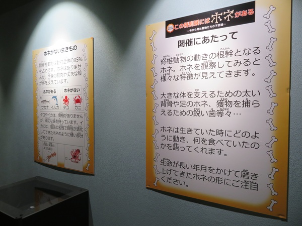 ②骨が無い動物についての展示(タコ・イカのクチバシや殻の名残について紹介)