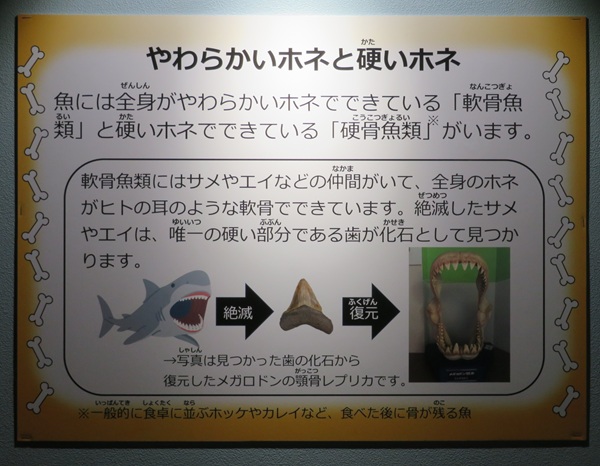 ③軟骨魚類と硬骨魚類の紹介 歯や毒針の展示
