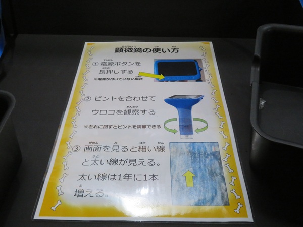 ・顕微鏡で骨の構造を観察する展示(サンゴの骨)