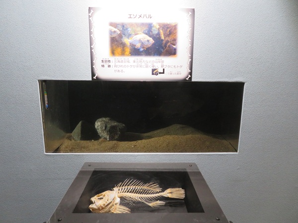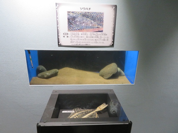 ⑦カレイ類やソイ類の生体展示と対になる骨格標本
