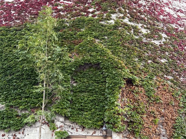 (↓9/30 17:00頃…建物のツタが少し色づき始め、額に入った絵のように見えました。)[ヨ]