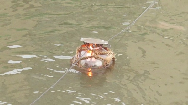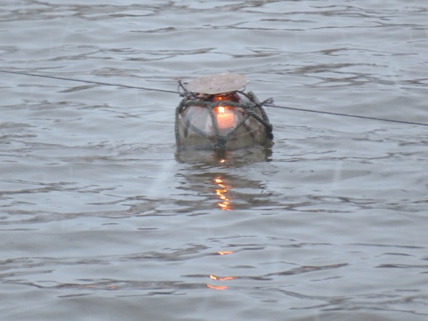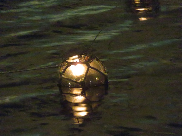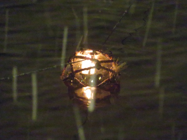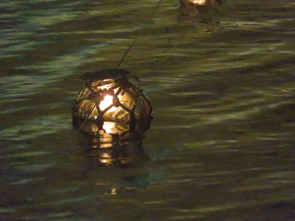 浅草橋街園側から完成した浮き玉キャンドルを撮影