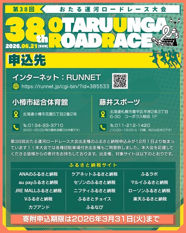第38回おたる運河ロードレース大会のエントリー受付