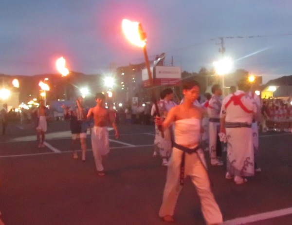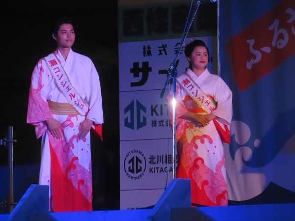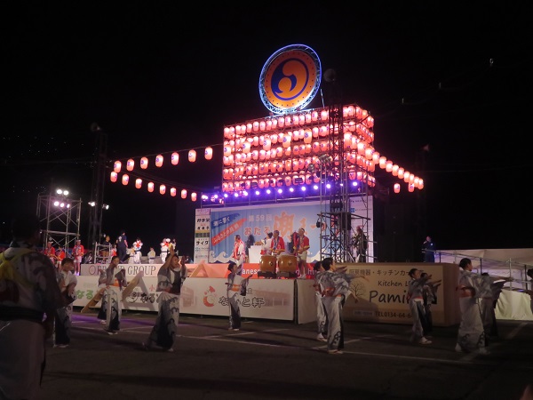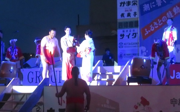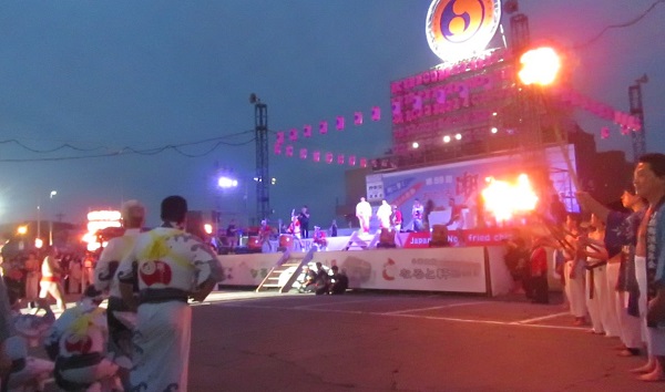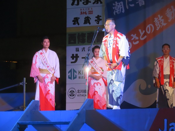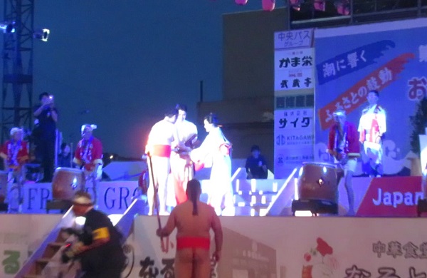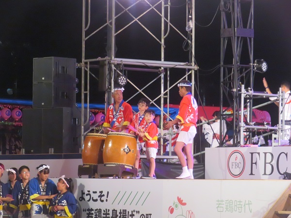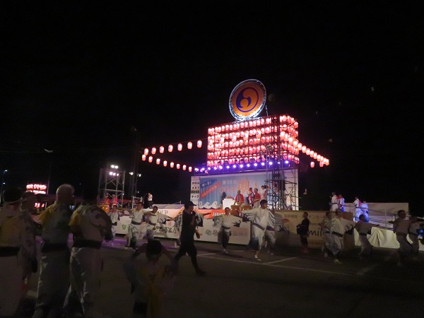 ふれこみに参加した梯団がステージを踊り抜けしました。