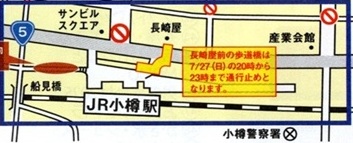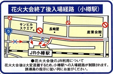 花火大会後は大変混雑するため、小樽駅への入場経路が規制されます。
