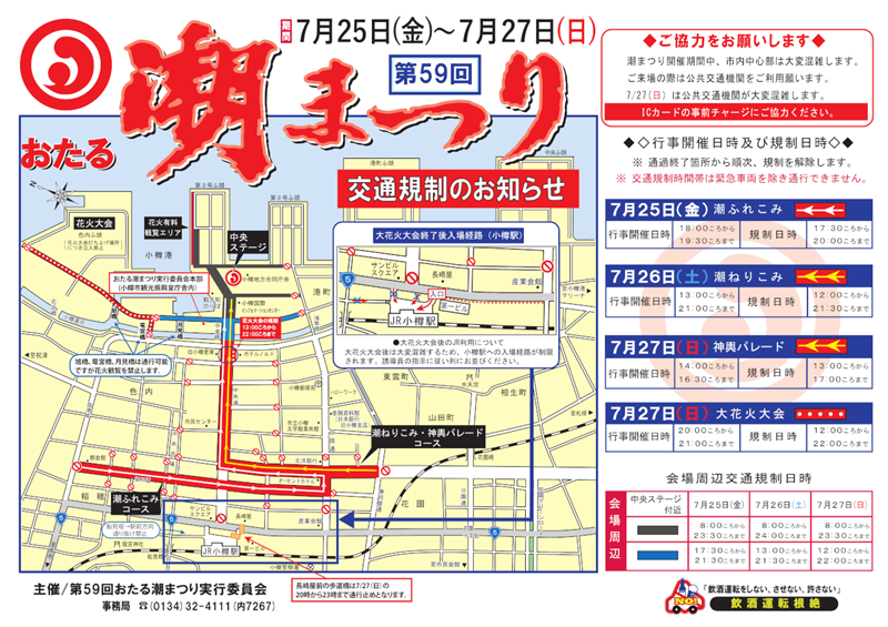おたる潮まつり開催期間中、市内中心部は大変混雑いたします。