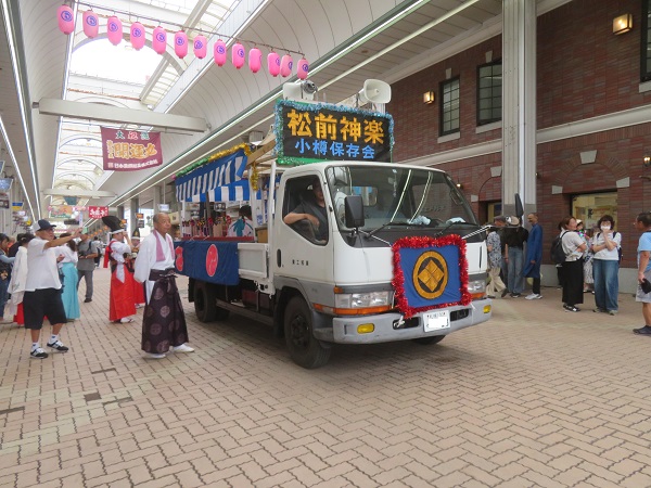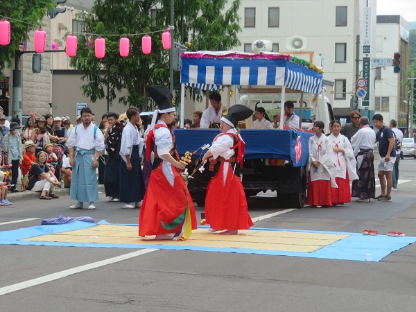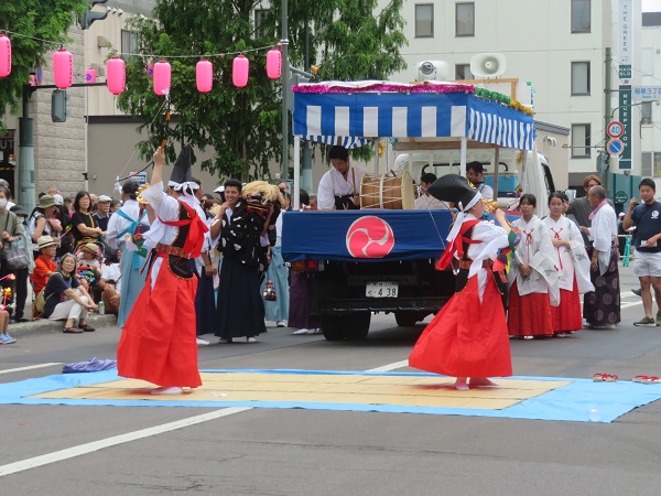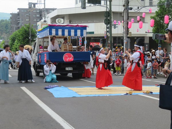 松前神楽小樽保存会を先頭に、小樽住吉神社赤坂奴同好会の奴さん、