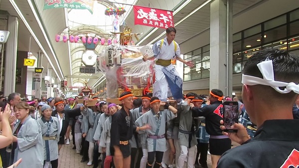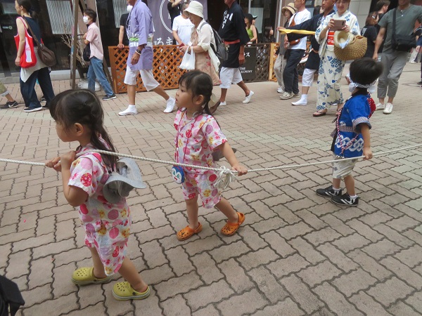 この先、中央通りからのコースでは担ぎ手が約800人まで増え、