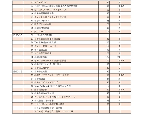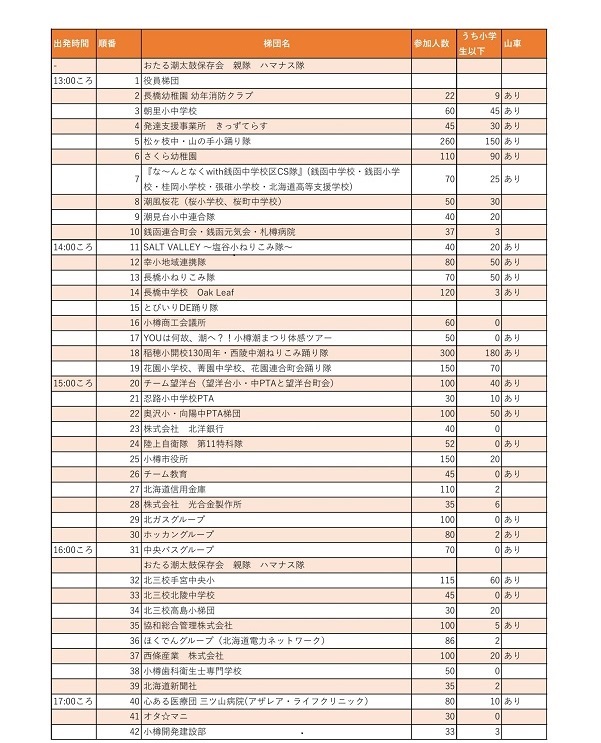 第59回おたる潮まつり、潮ねりこみ参加梯団の一覧と出発順序を掲載しております。