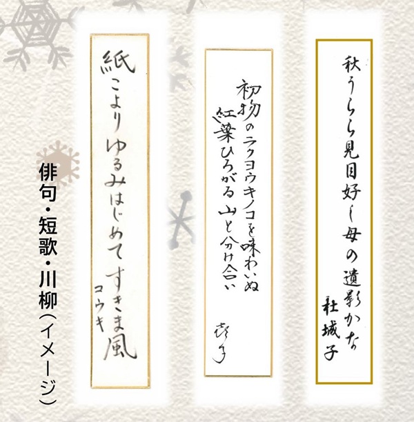 短いことばに作者の思いをのせ書き綴られた「俳句」・「短歌」・「川柳」と、