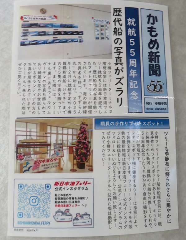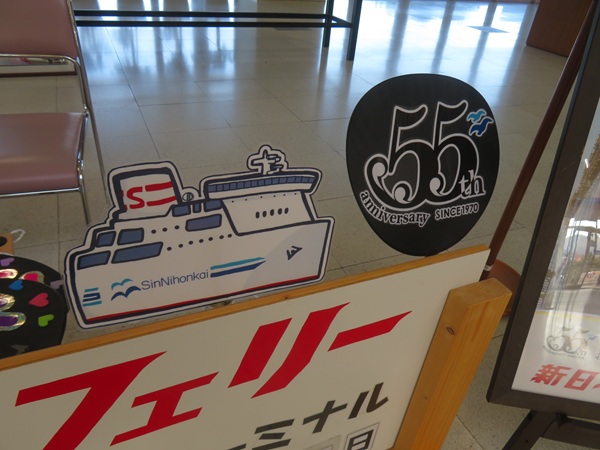 小樽フェリーターミナル2階待合室には新日本海フェリー就航55周年を記念した、