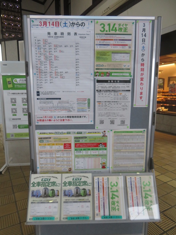 ダイヤ変更に伴う小樽駅発車JR列車運情報