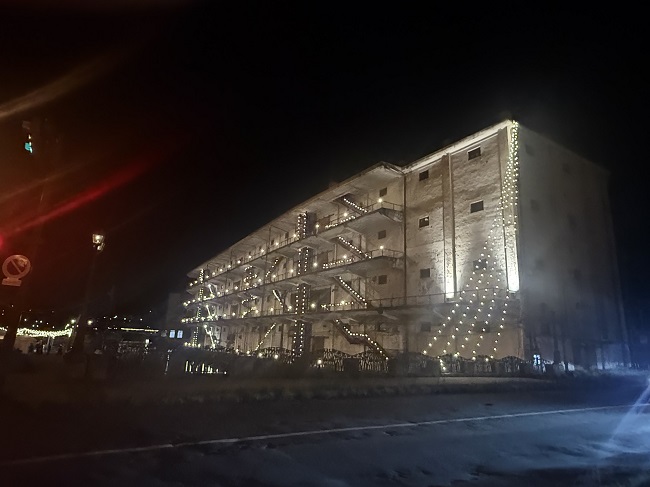 夜はyummy市を楽しみながら旧第3倉庫の特別なライトアップと