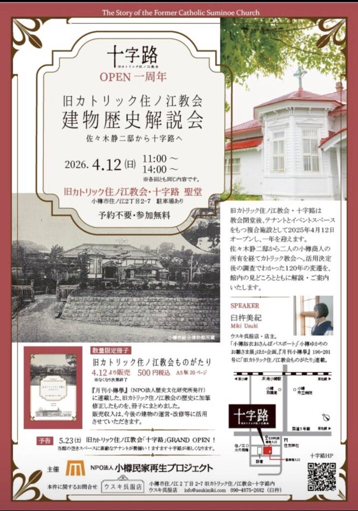 会  場 旧カトリック住ノ江教会・十字路 聖堂(小樽市住ノ江2丁目2-7) 駐車場あり