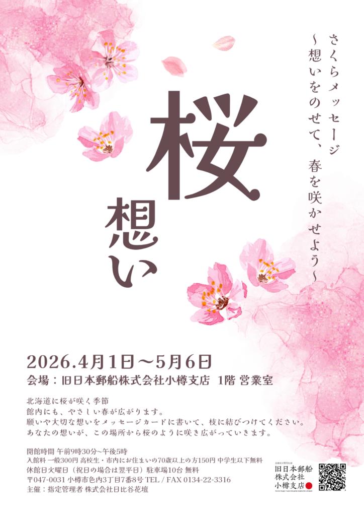 4月1日より旧日本郵船株式会社小樽支店1階営業室に桜装飾を設置いたします。