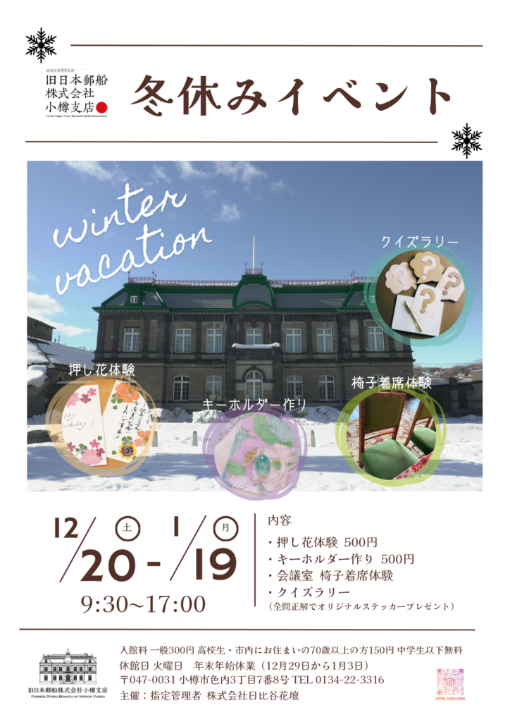 旧日本郵船株式会社小樽支店で冬休みイベントを開催します。