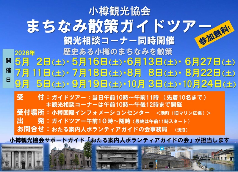小樽観光に来られた方に気軽に参加して頂く、散策ガイドツアーです。