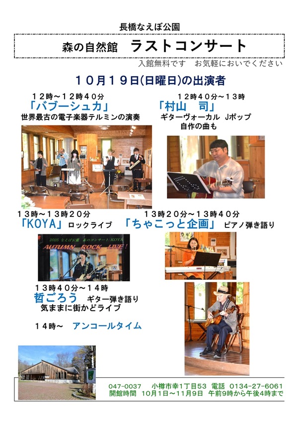 2025年10月12日(日)・19日(日)に森の自然館ホールで開催される