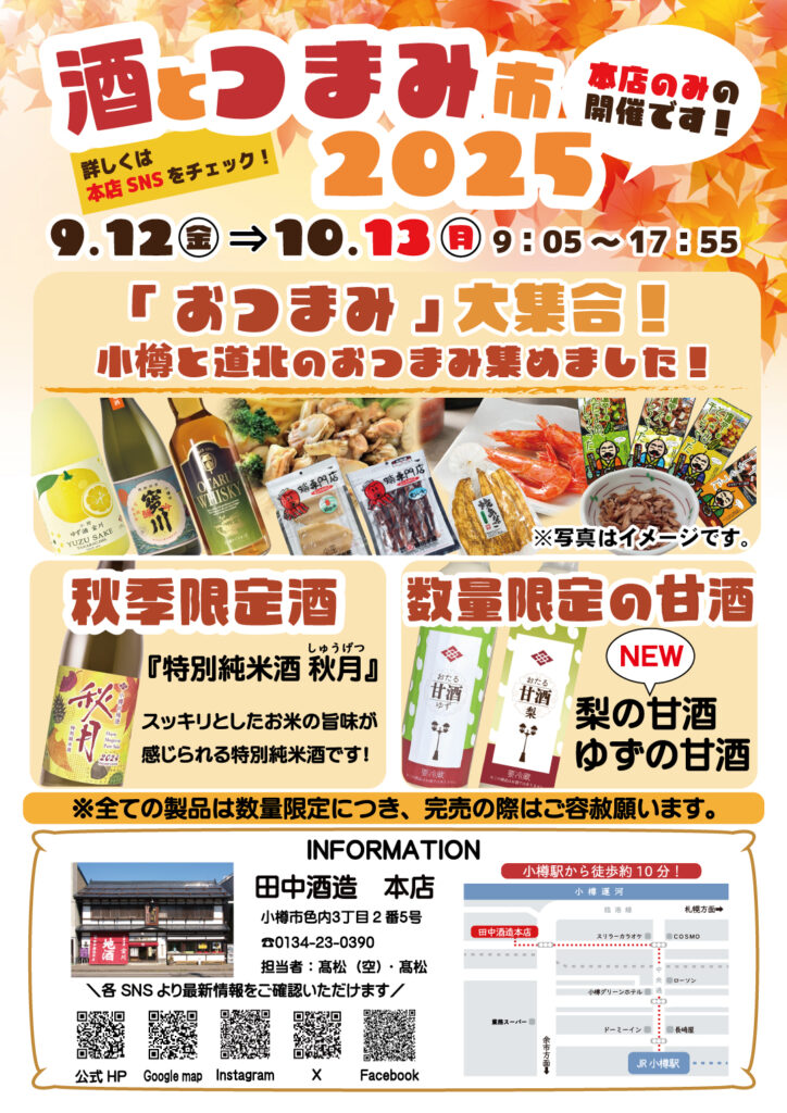 問合せ 田中酒造株式会社 本店電話0134-23-0390