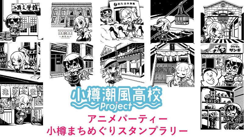 小樽潮風高校Project「小樽アニメパーティー 小樽まちめぐりスタンプラリー」が始まります。10個以上のスタンプを集めた方100名様にクリアファイルをプレゼント致します。