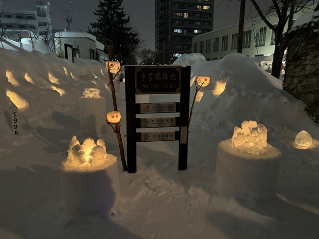 ・北海道で最初の鉄道開業区間の一部であり、線路が今でも雪の下に残されている会場です。