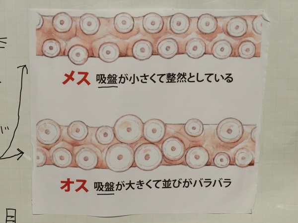 タコのオスとメスの見分け方吸盤が違うそうです。今度じっくり見てみます。