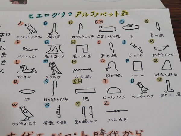 古代エジプトの象形文字のヒエリフアルファベット表がかわいいですね。