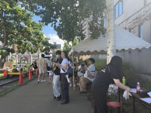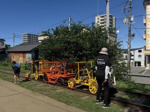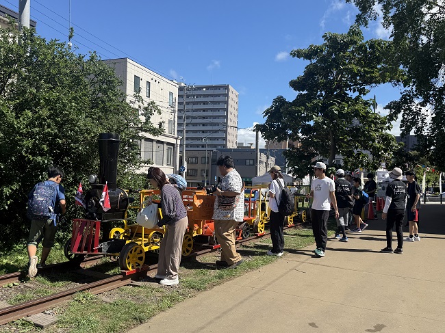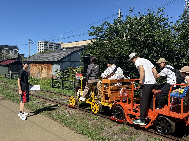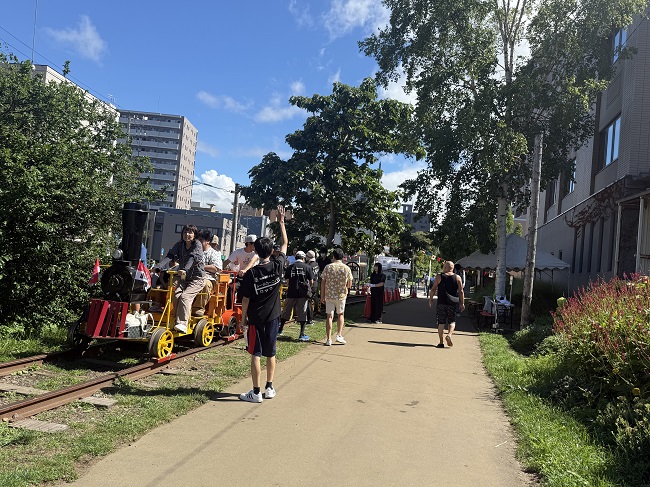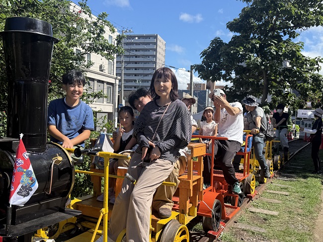 朝のお天気が嘘のような青空んの広がる暑い一日になりました。トロッコにも小樽市内や本州からのご家族が乗車されていました。子供さんにはうまい棒のお土産もありました。明日まで開催していますので、どうぞ少しだけ体を動かし、楽しんでみませんか?!