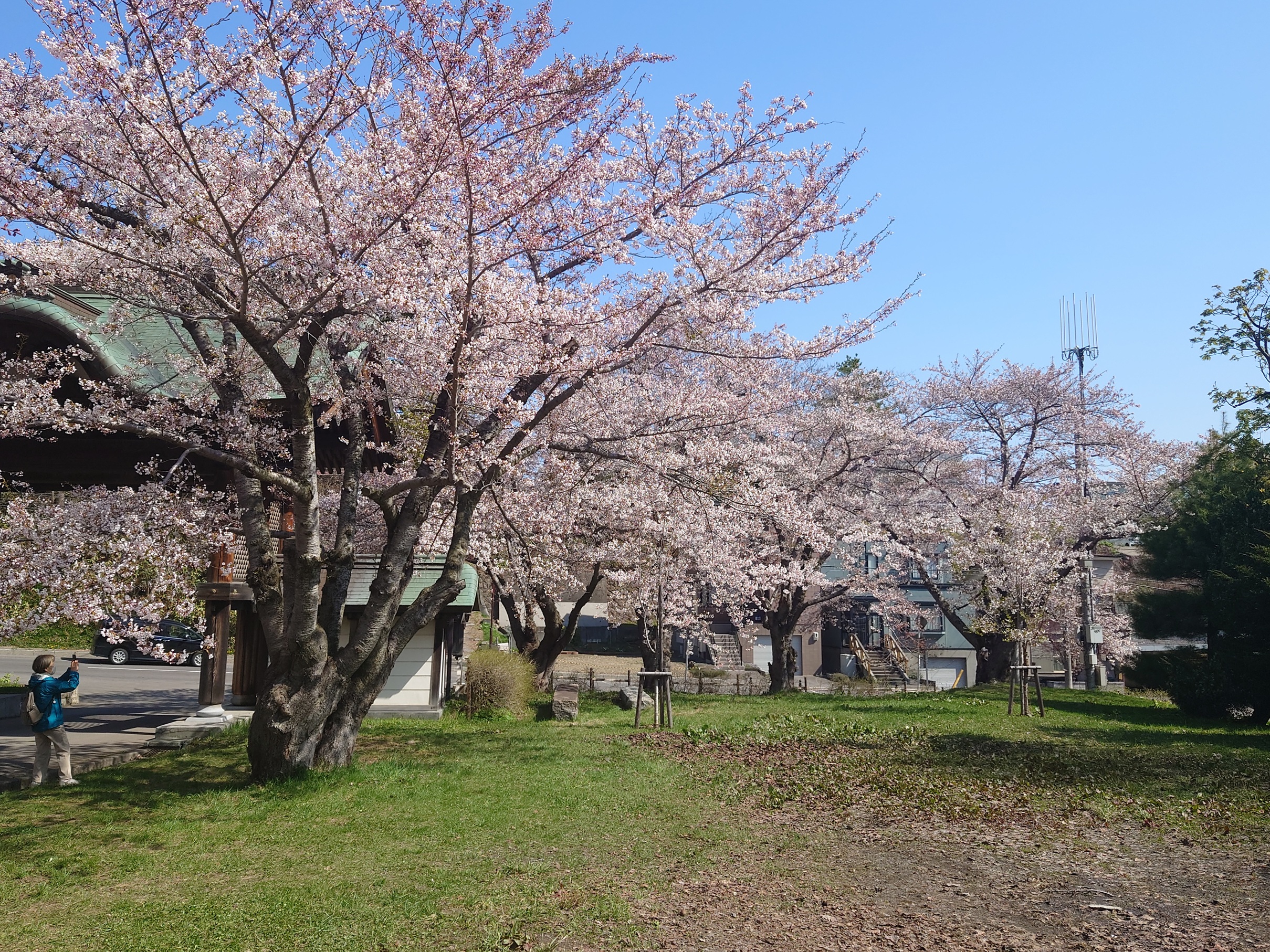 天気も良く、たくさんの人が朝早くから花見にきていました。