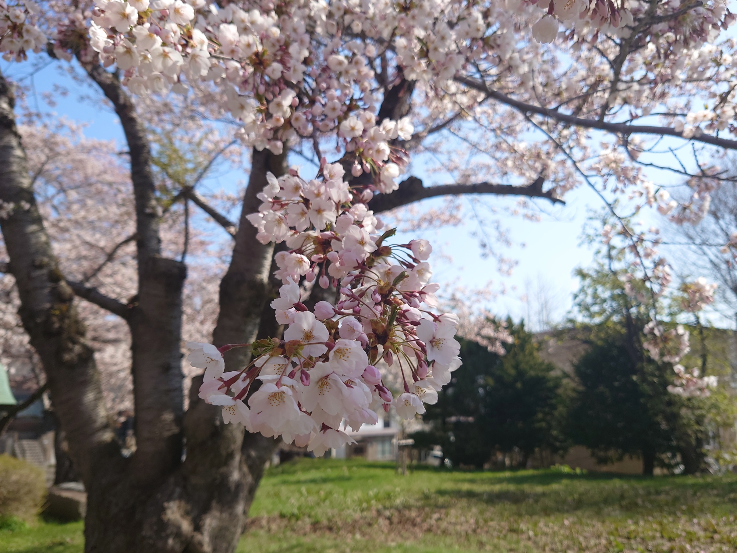 本日、さくらの状況は、まだ桜の花は5分咲きくらいで、つぼみもまだたくさんあります。