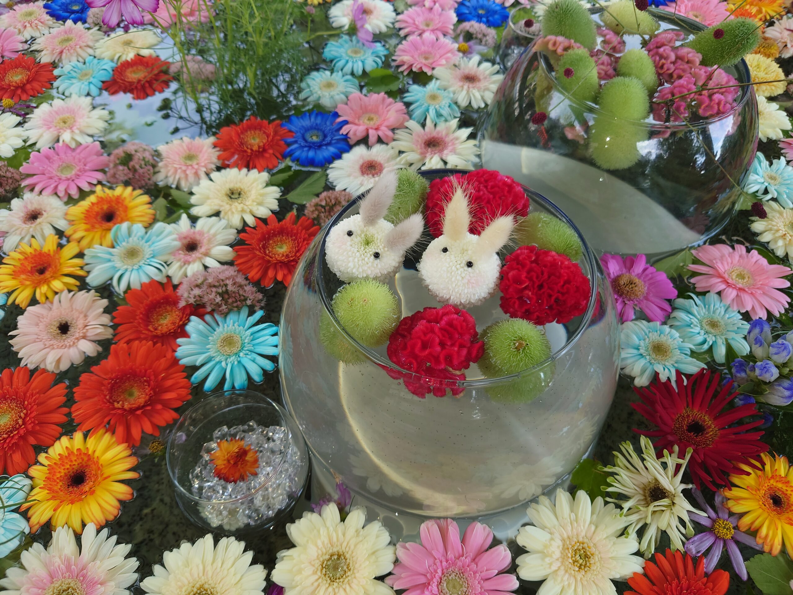 十五夜が来月なので、かわいいうさぎさんがガラスボウルに登場しています。