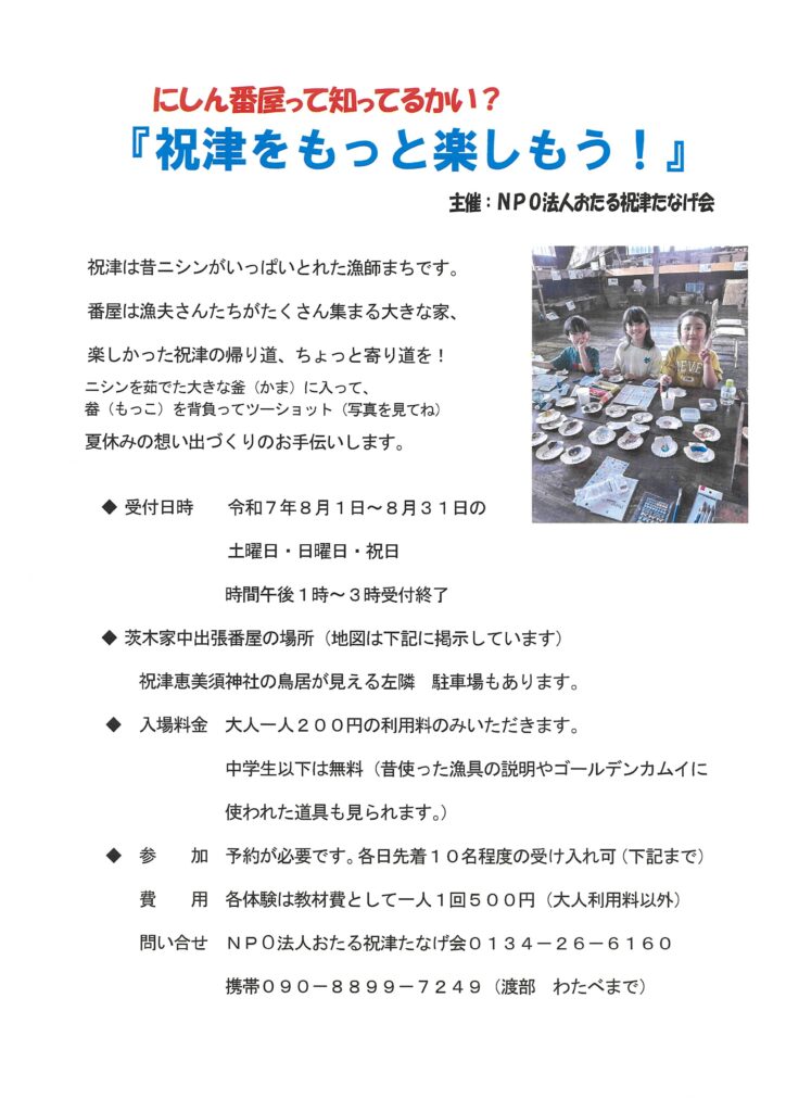 【8月土日祝日限定】『祝津をもっと楽しもう!』