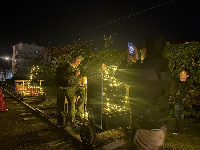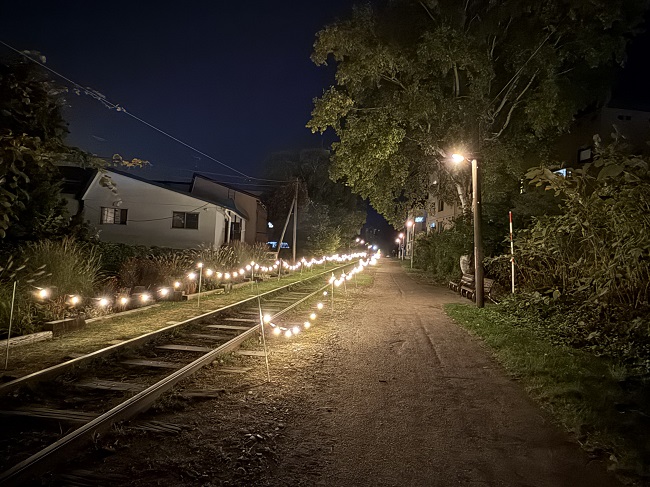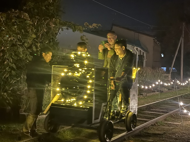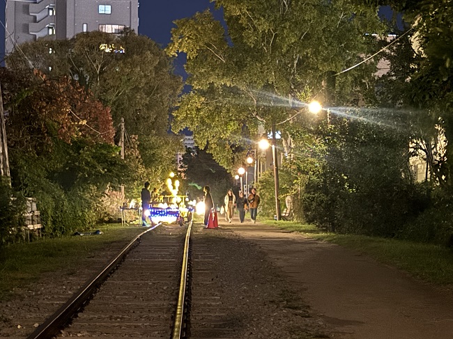 日中は中央通りを挟んだ旧手宮線で、レールカーニバルinおたる「小樽トロッコの旅・秋きっぷ」(10/11.12.13 10:00~16:00)が開催しています。午後6時~9時の間は、ナイトカーニバルが開催されています。所要時間は漕ぎ方で変わりますが、早い人は3分~5分。ゆっくりでも10分です。どうぞ暖かい服装でご利用になりませんか。