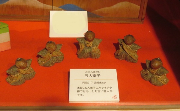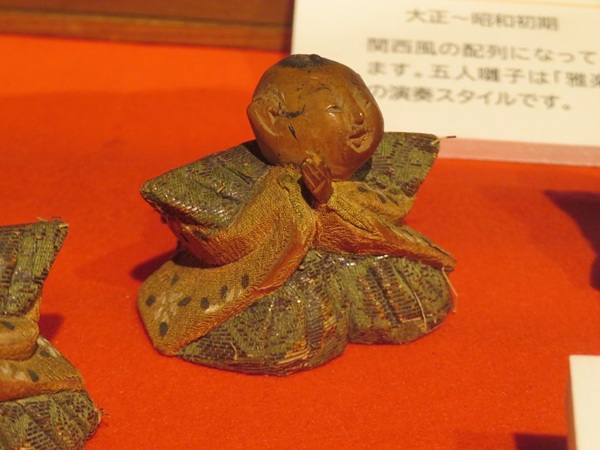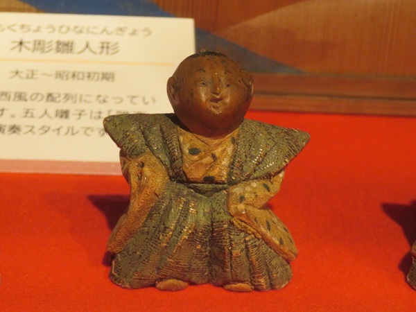 木製、五人囃子のみですが小樽ではもっとも古い雛人形です。