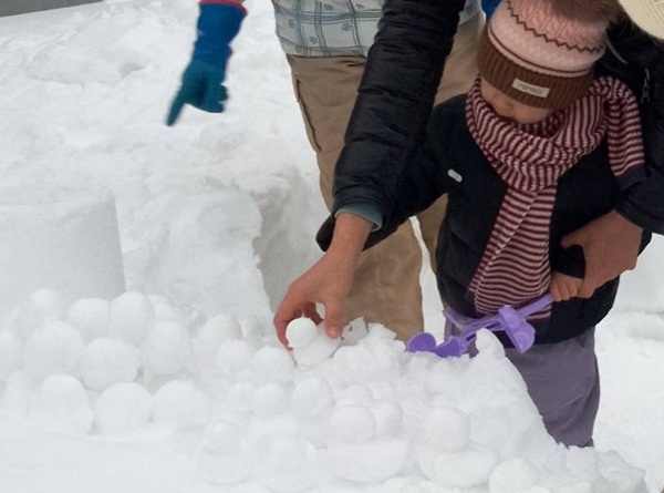 準備作業中、海外からの観光客が雪のアヒルをたくさん作ってくれました。